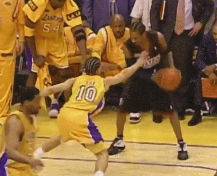 在本场比赛中,艾弗森上演了晃倒泰伦-卢并将其跨越的经典场面。